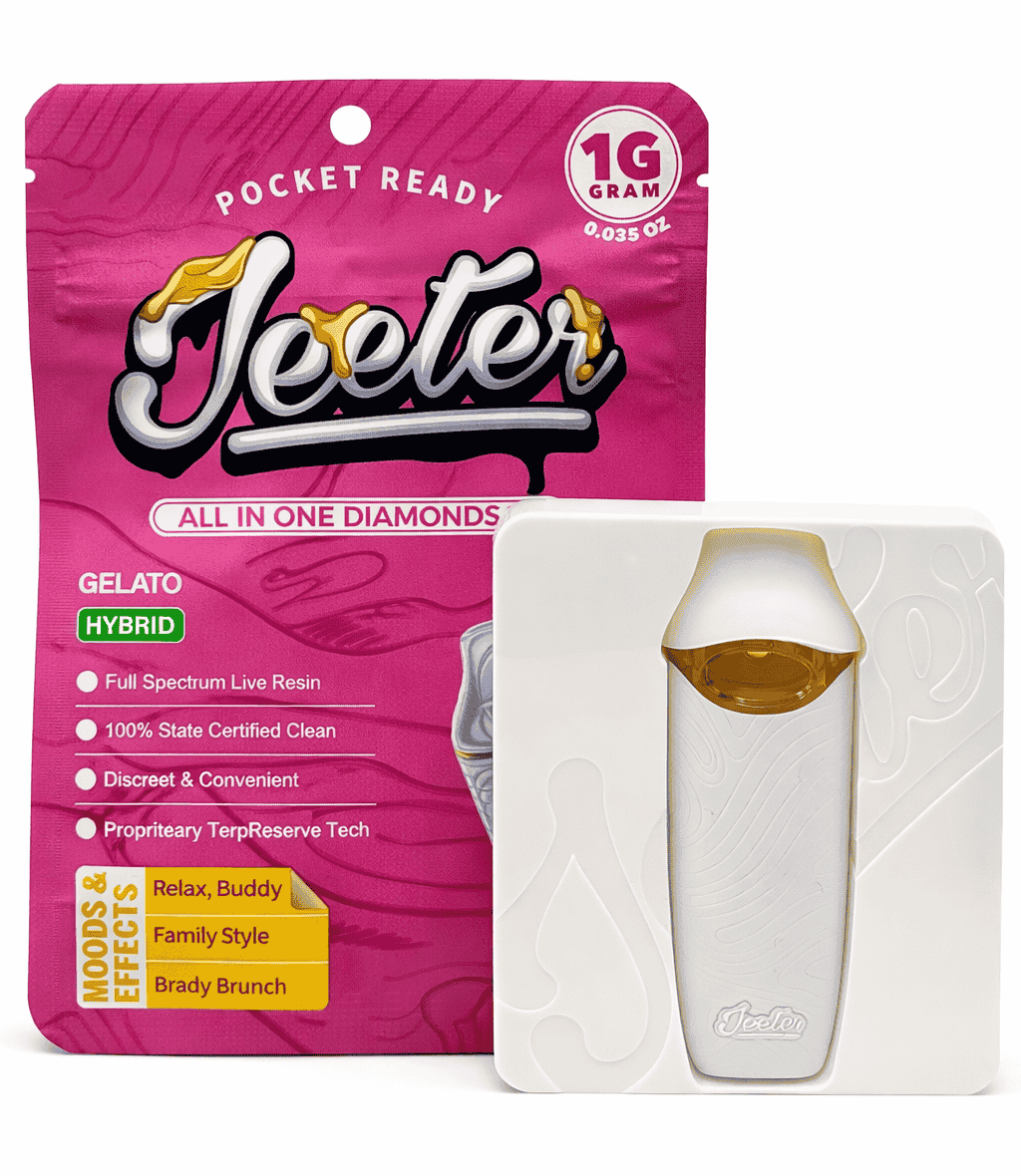 The terpene profile enhances both flavor and effects, making Gelato Jeeter Vape a premium hybrid vaping experience.