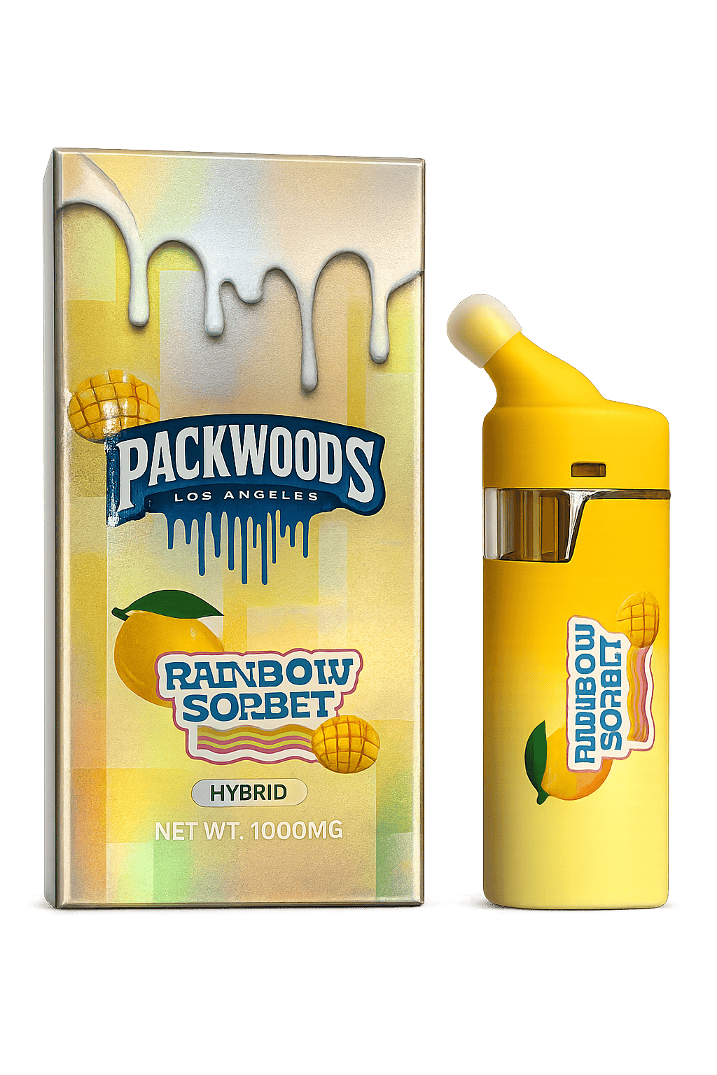 Rainbow Sorbet – Packwoods is a vibrant, sativa-leaning vape flavour bursting with sweet, fruity sorbet notes blending bright berries, citrus and candy-like tones, offering an uplifting, energising experience with smooth, flavourful hits from first puff to last.