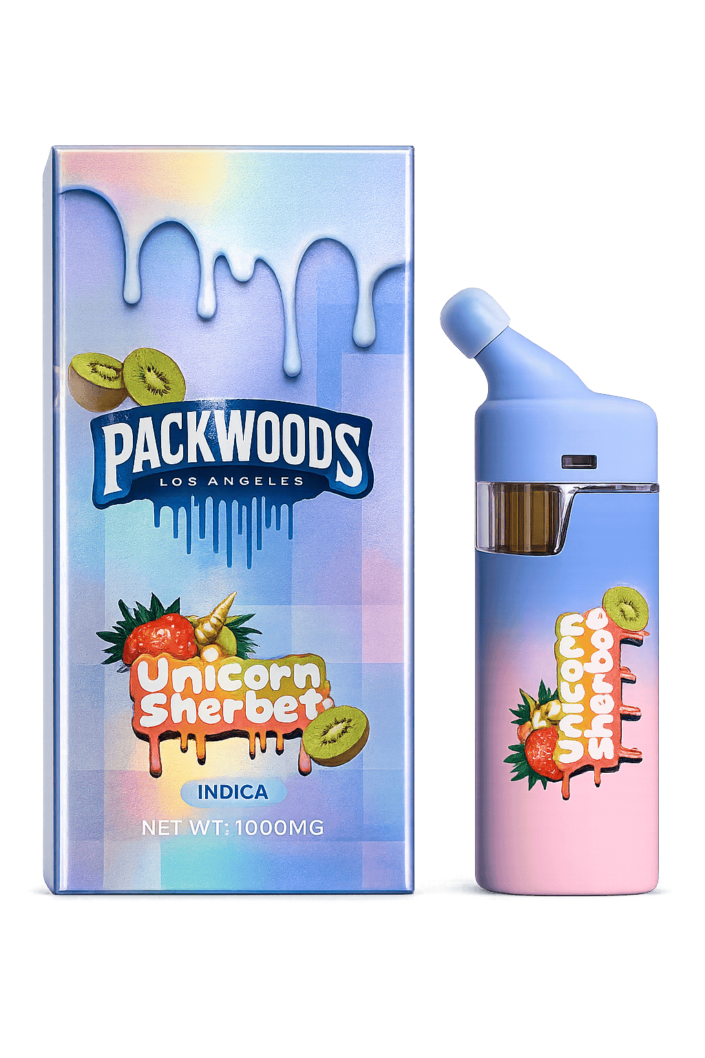 Unicorn Sherbet – Packwoods is a sweet, fruity cannabis vape flavour with sugary sherbet-style notes blending kiwi and strawberry sweetness for a bright, dessert-like taste and uplifting, energising effects ideal for flavour-chasing sessions.